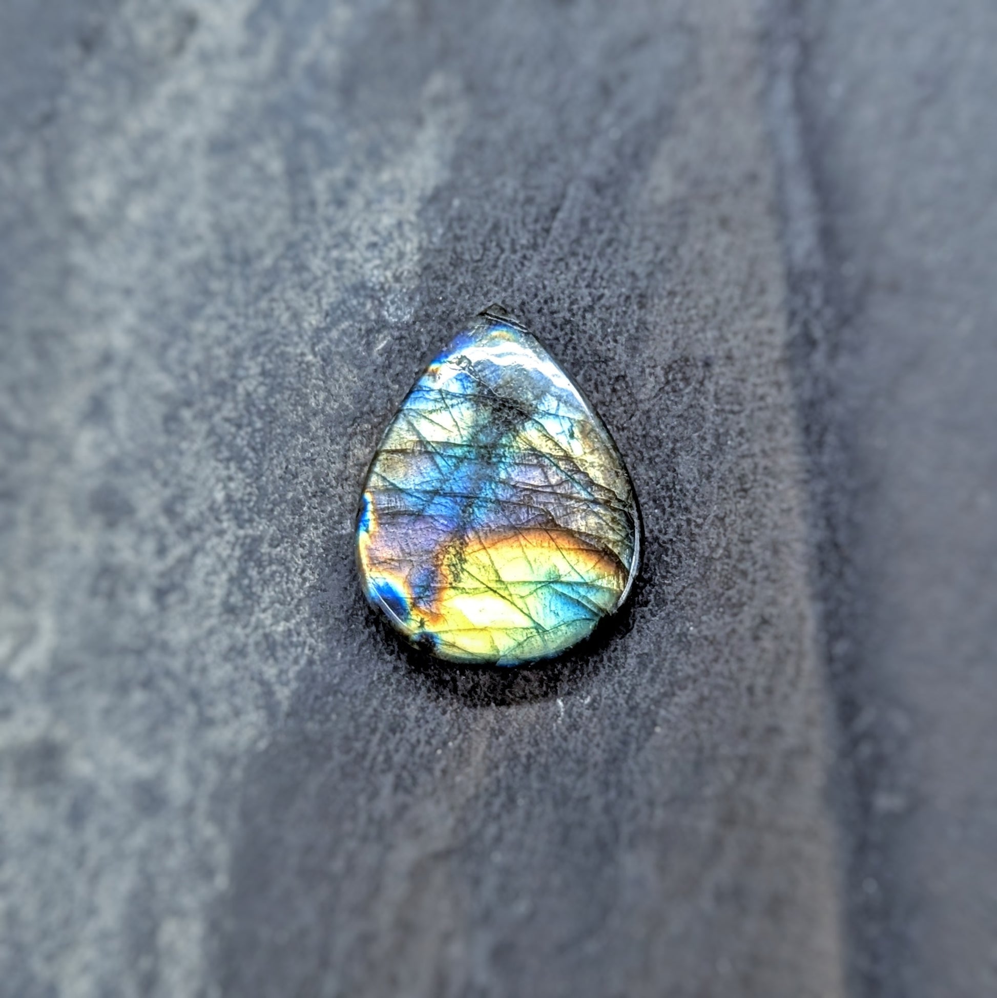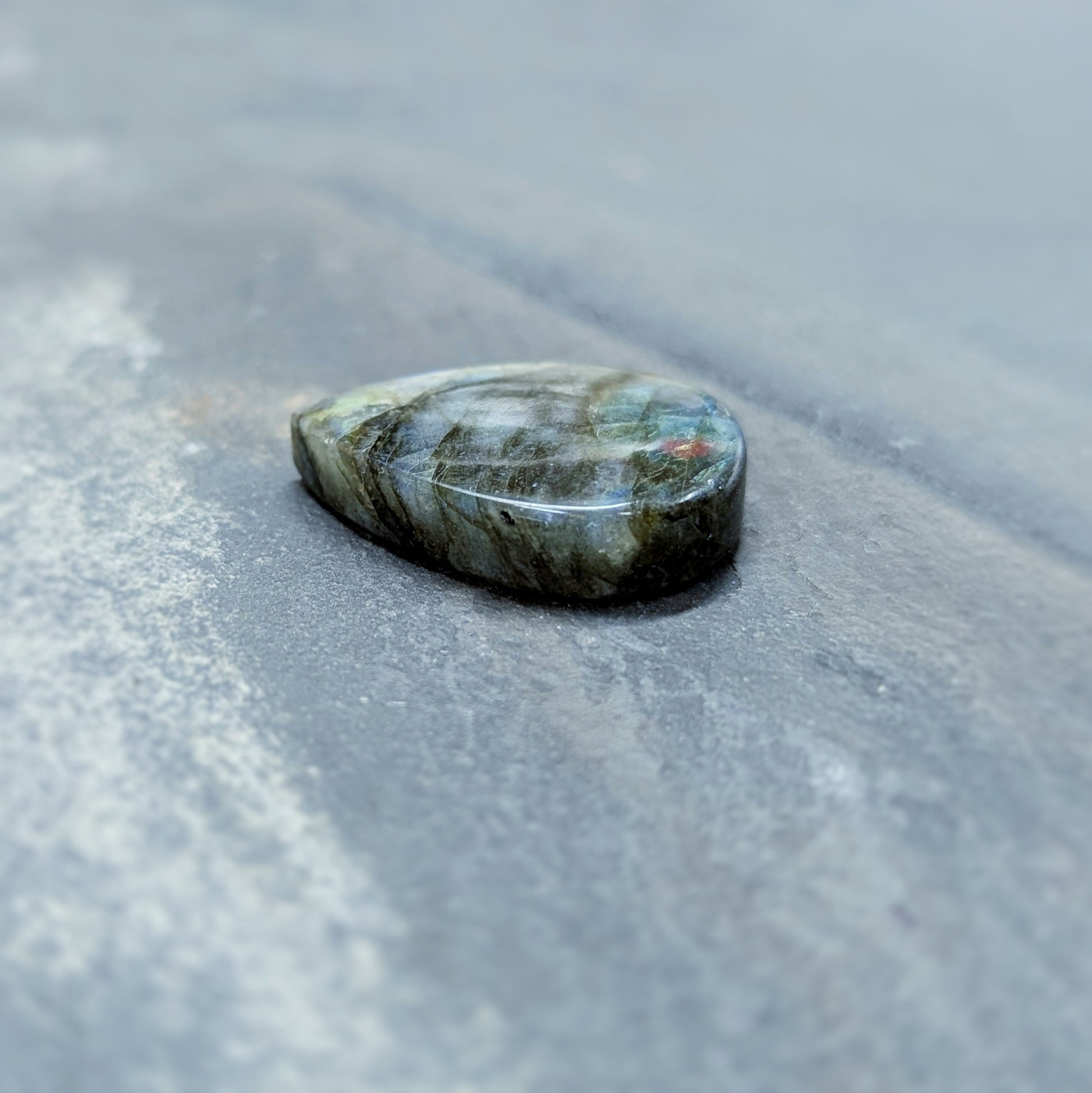 A beautiful rainbow Labradorite teardrop cabochon, perfect for jewelry makers, collectors, and anyone drawn to the magic of this unique stone.