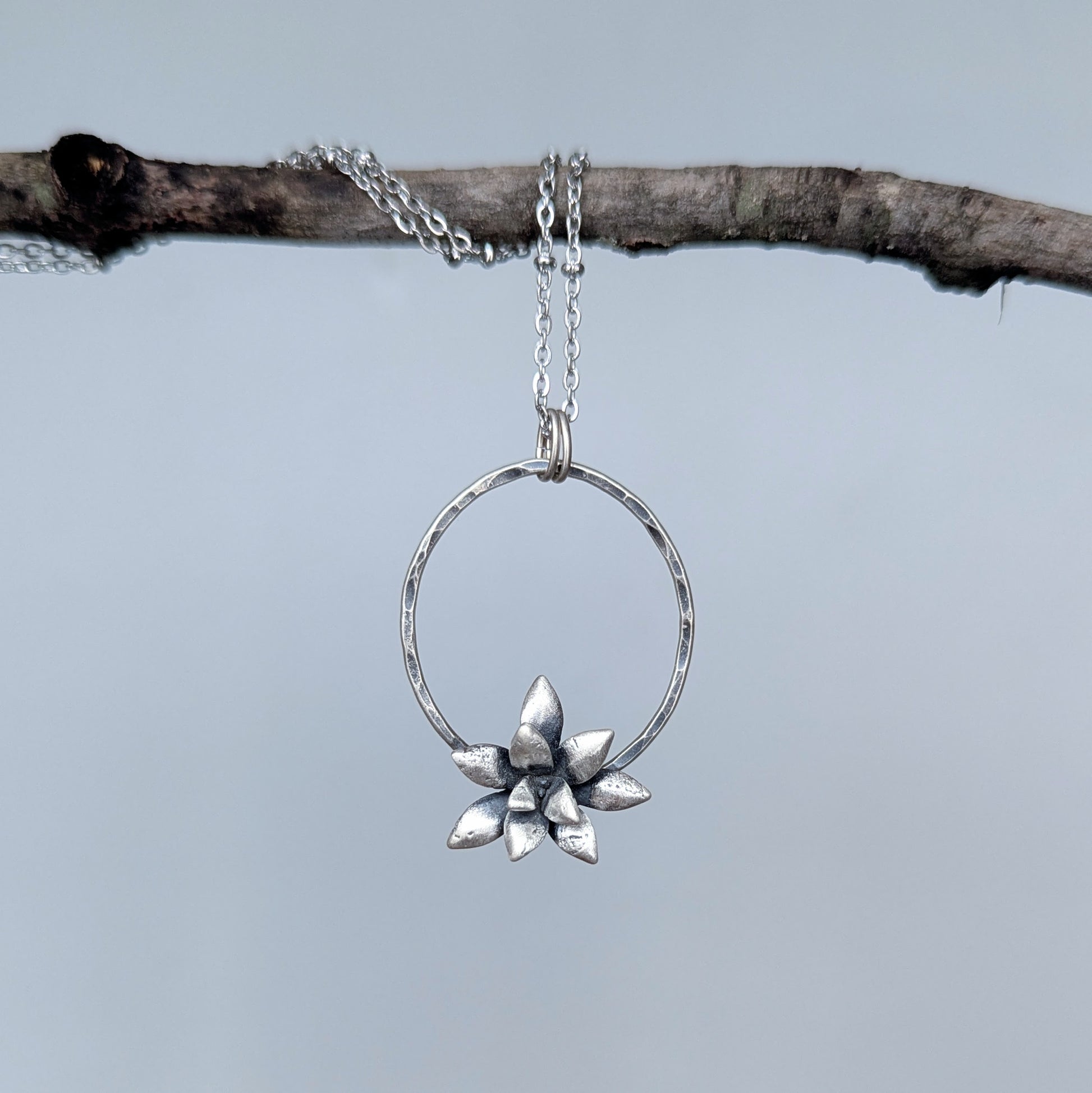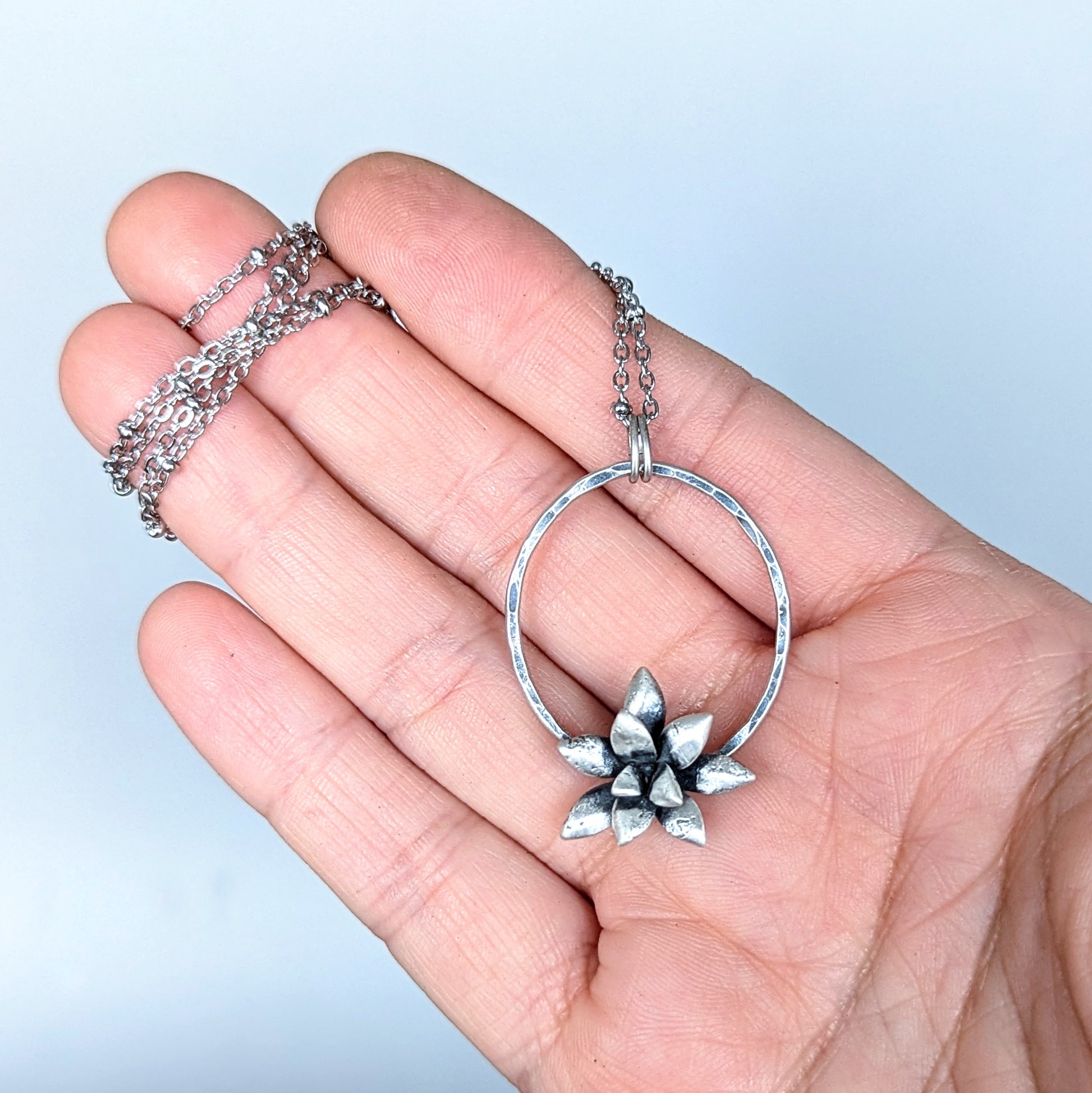Florae Metallum: Cast Solid Sterling Silver Succulent Necklace