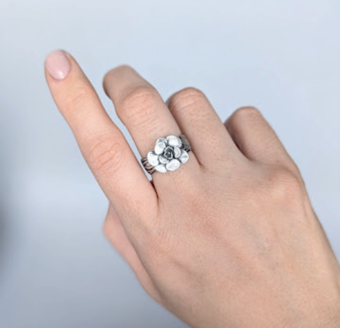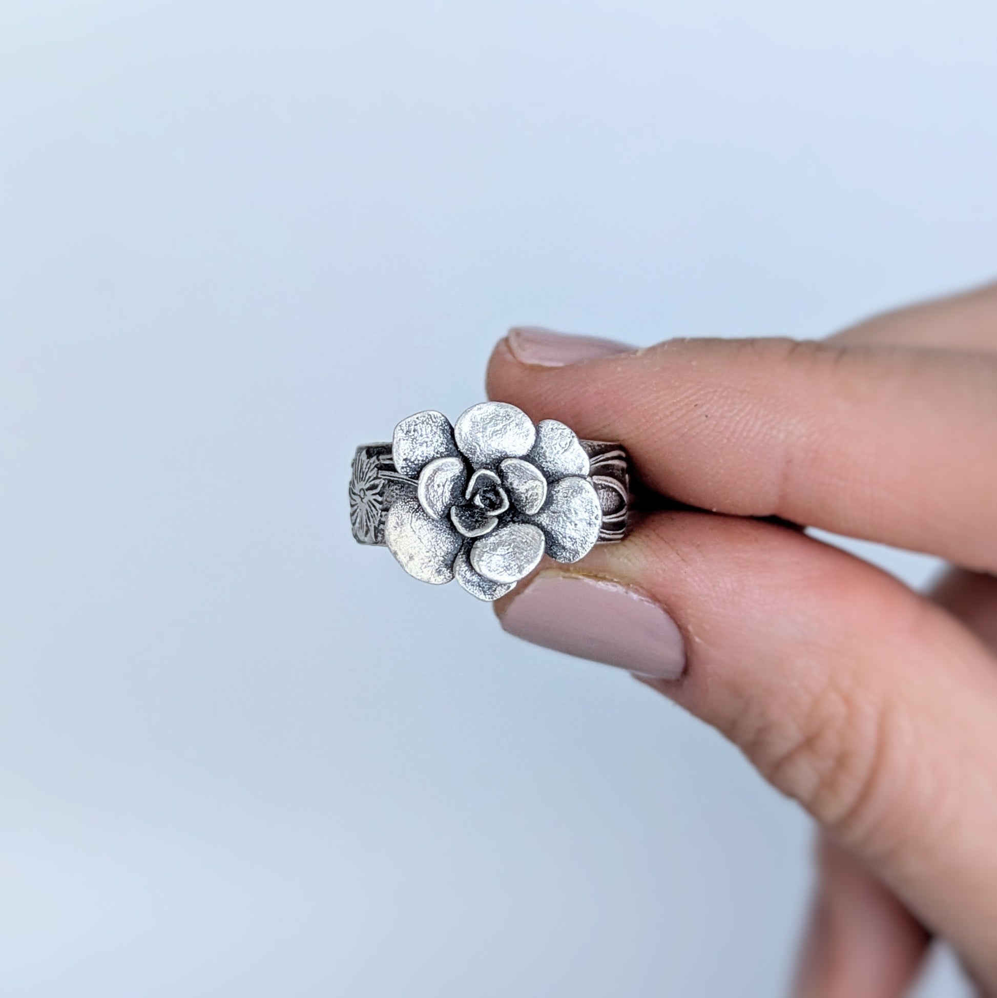 Florae Metallum: Cast Solid Sterling Silver Succulent Ring (medium #1), size 8.5