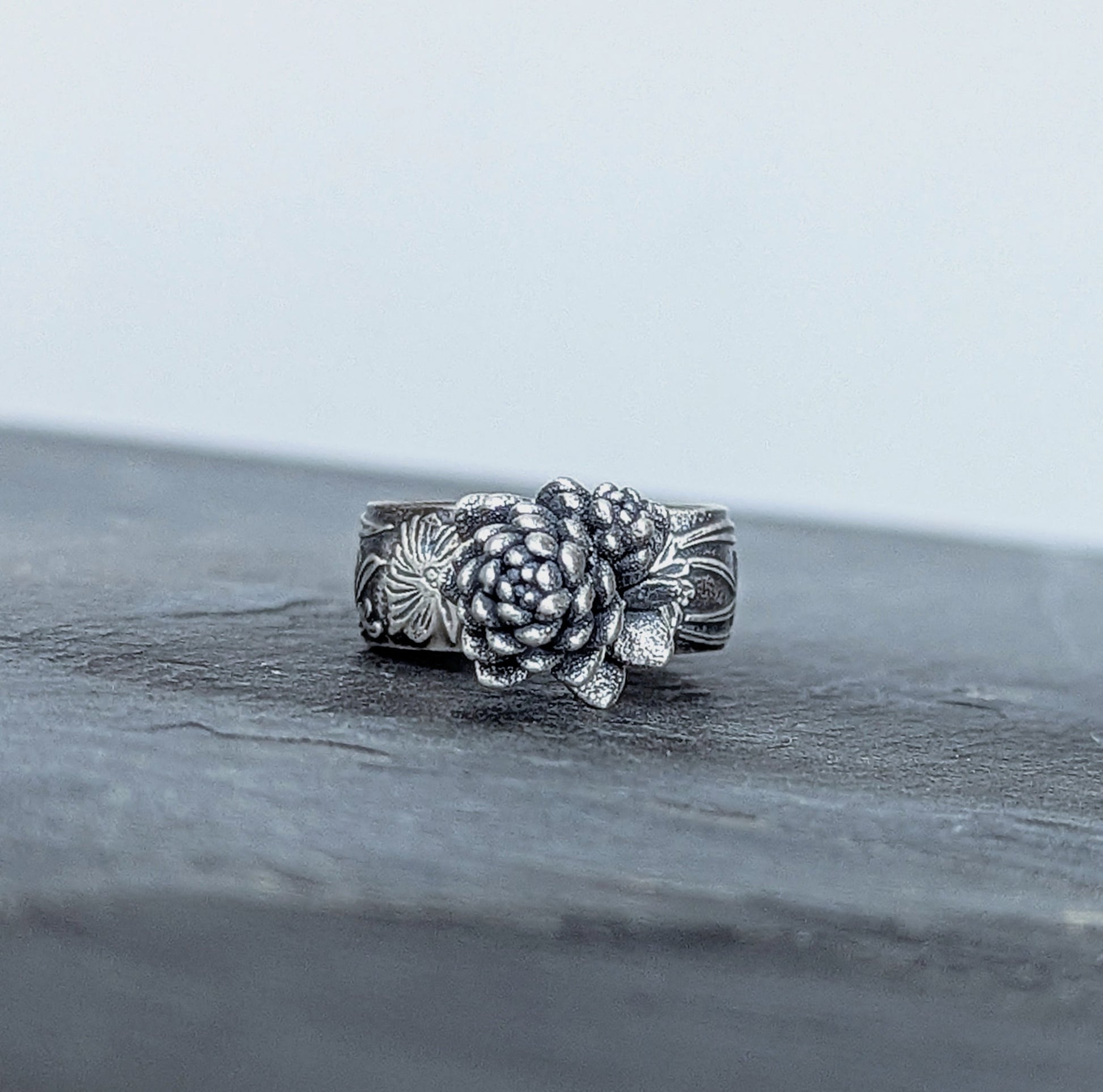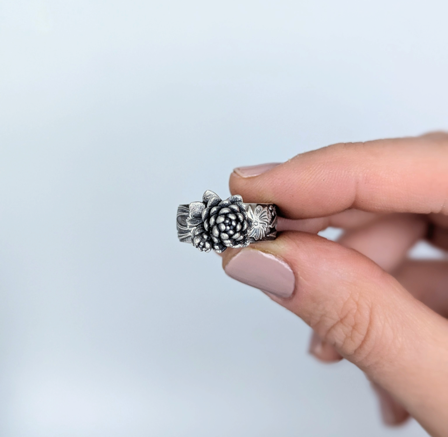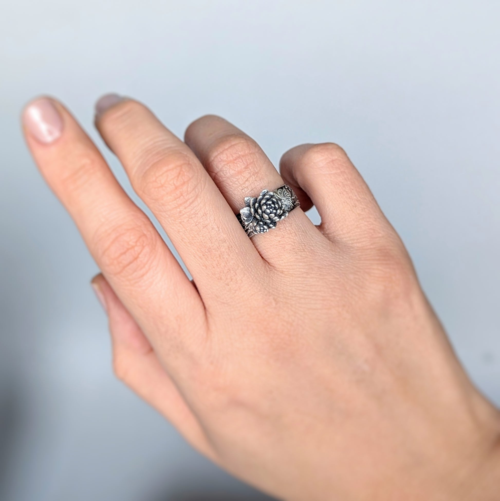 Florae Metallum: Cast Solid Sterling Silver Succulent Statement Ring, size 7