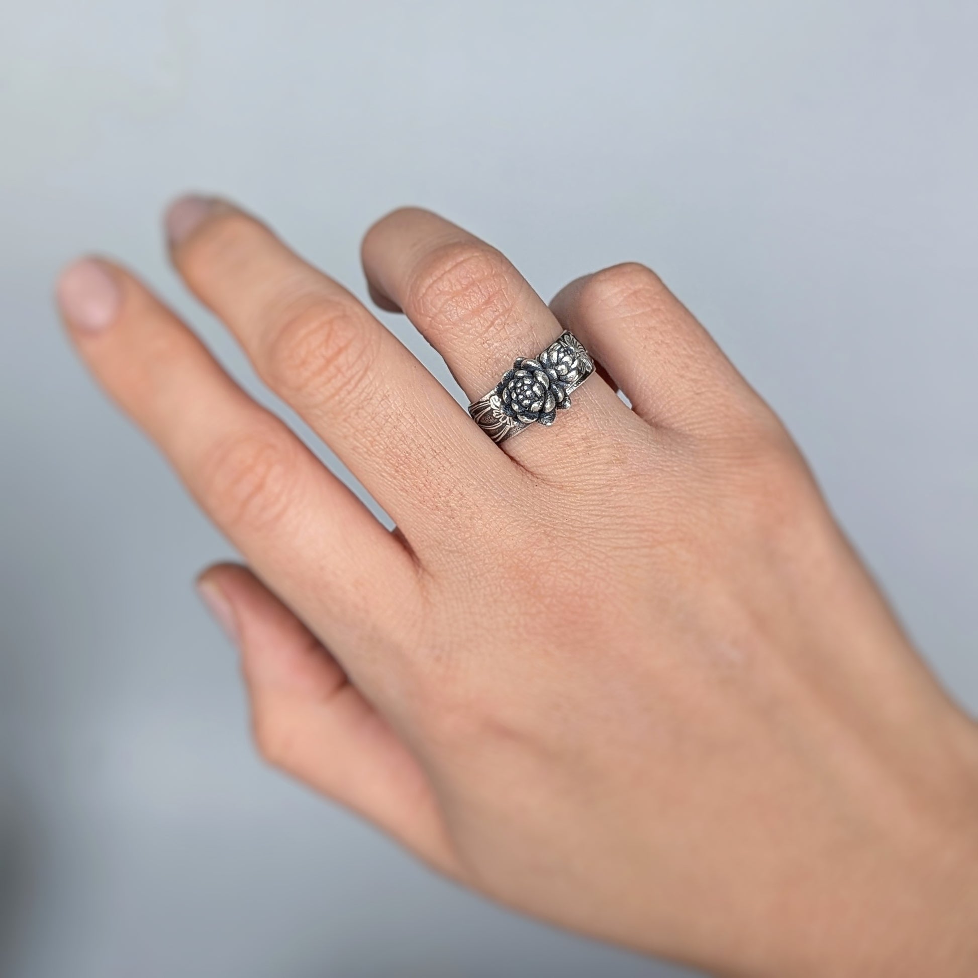Florae Metallum: Cast Solid Sterling Silver Succulent Statement Ring, size 7.5