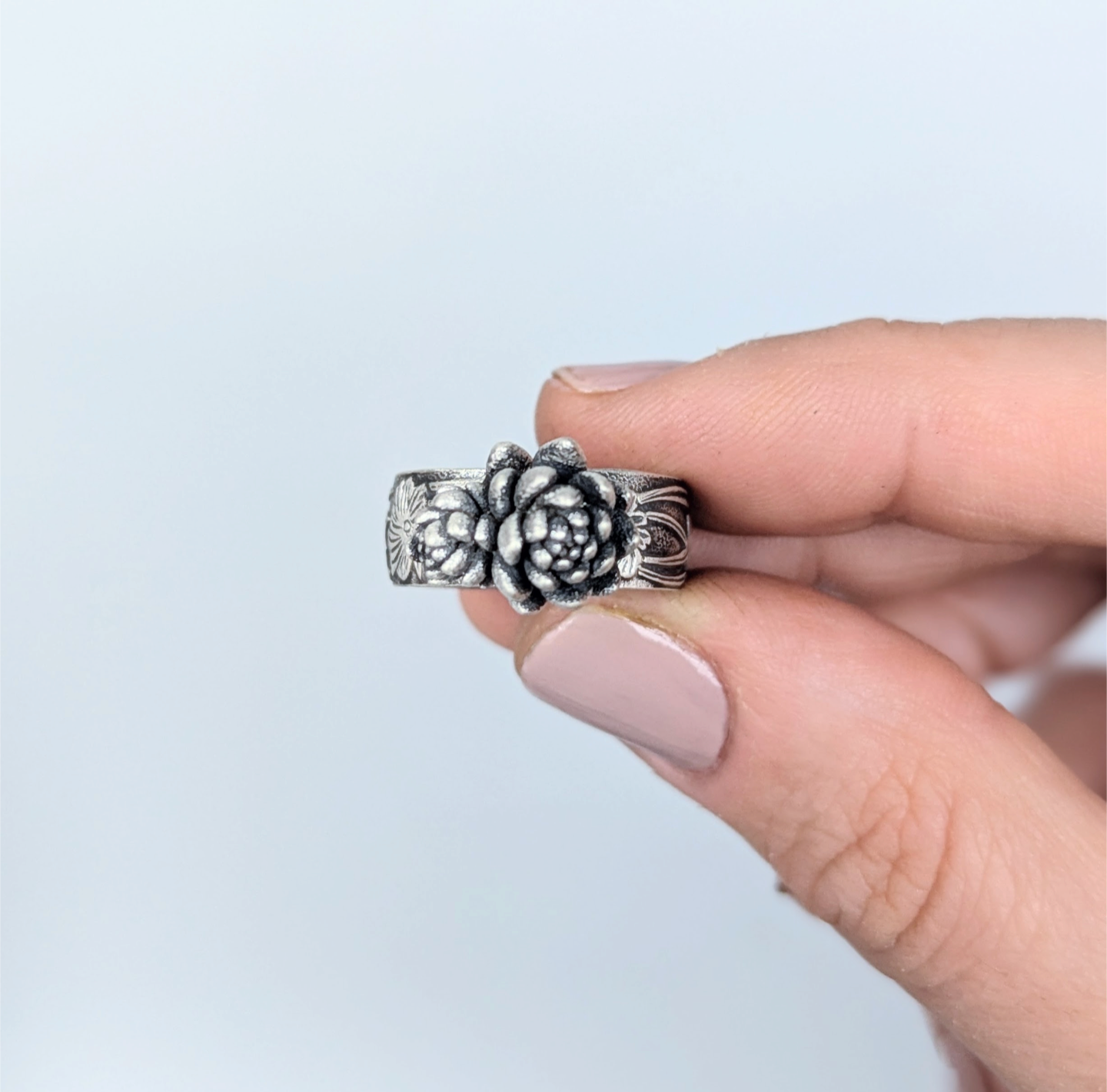 Florae Metallum: Cast Solid Sterling Silver Succulent Ring (medium #3), size 7.5