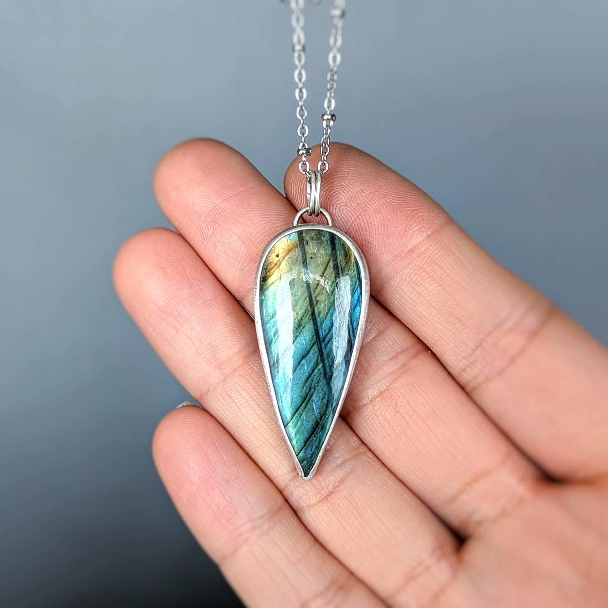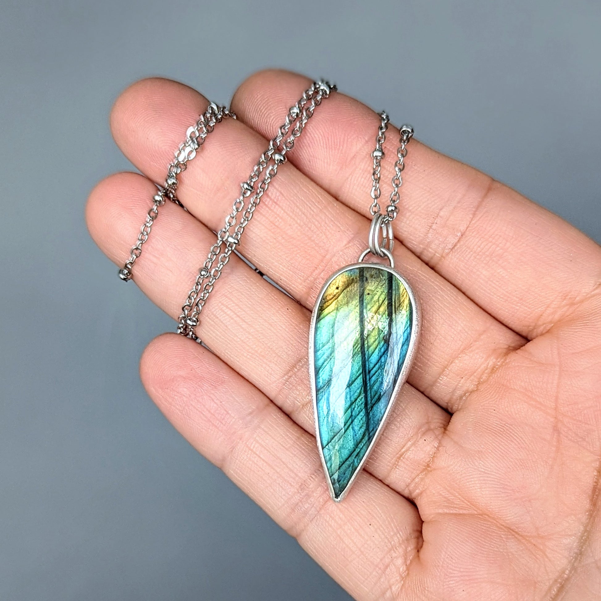 Artisan Mixed Metal Flashy Labradorite Necklace