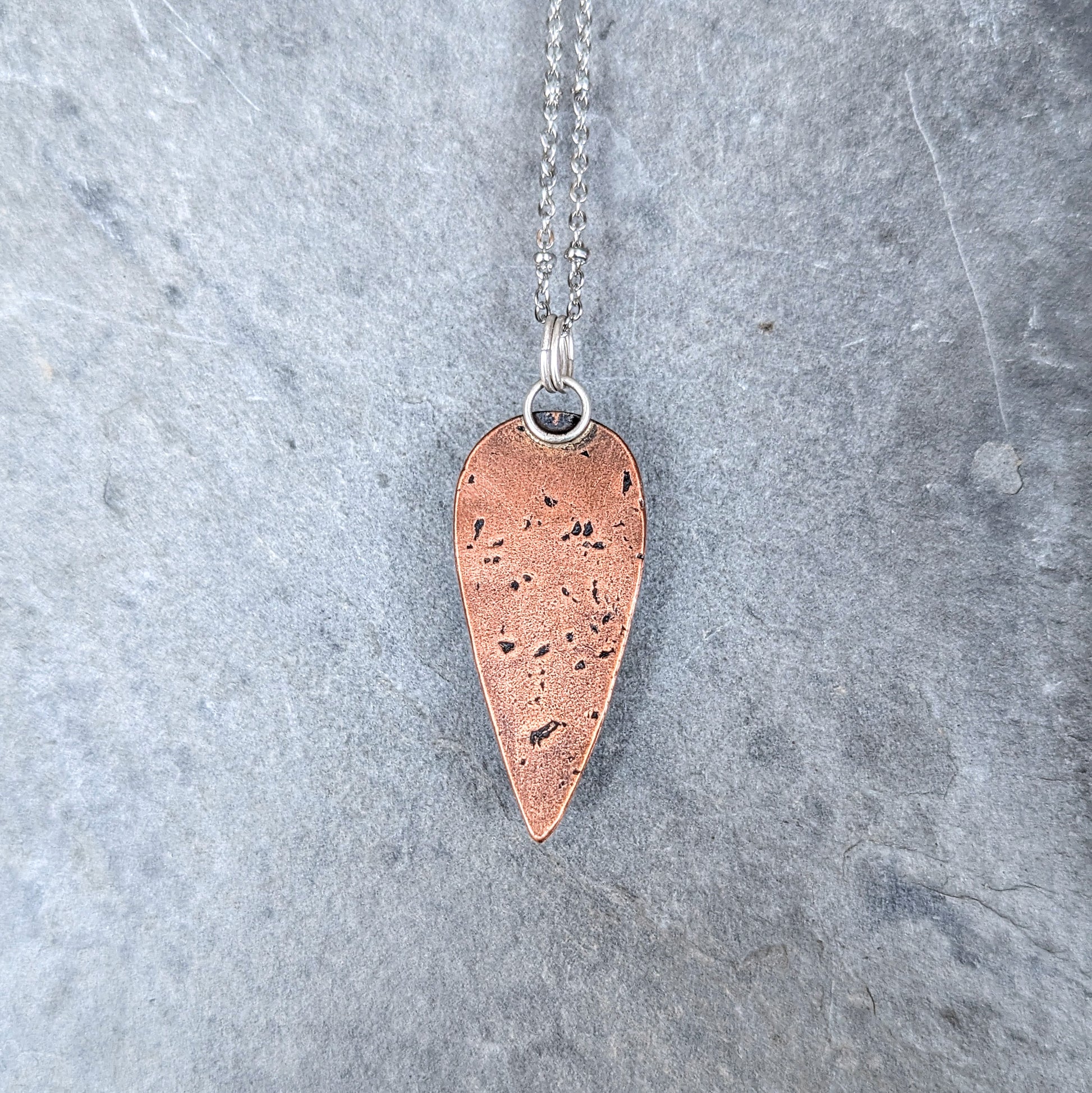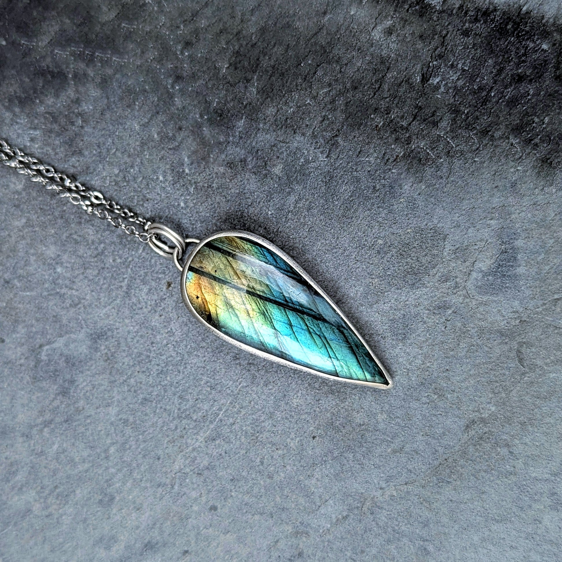 The pendant itself measures 1.75 inches long, and it hangs from a delicate stainless steel dot chain, adjustable at 18 and at 20 inches. If you need a different length, please let me know in the notes at checkout!